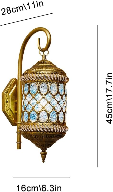 • [Material and Size]: Turkish style sconces hardwired wall hanging lantern Bronze iron lights featuring handmade PC lampshade. Length: 16cm/6.3in, Width: 28cm/11in, Height: 45cm/17.7in.